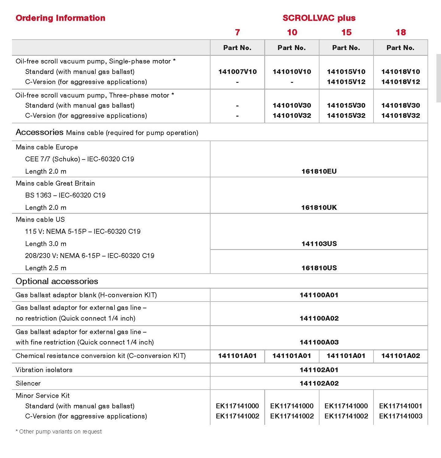 SCROLLVAC plus真空泵包括以下型号:SCROLLVAC 7 plus,SCROLLVAC 10 plus,SCROLLVAC 15 plus,SCROLLVAC 18 plus等